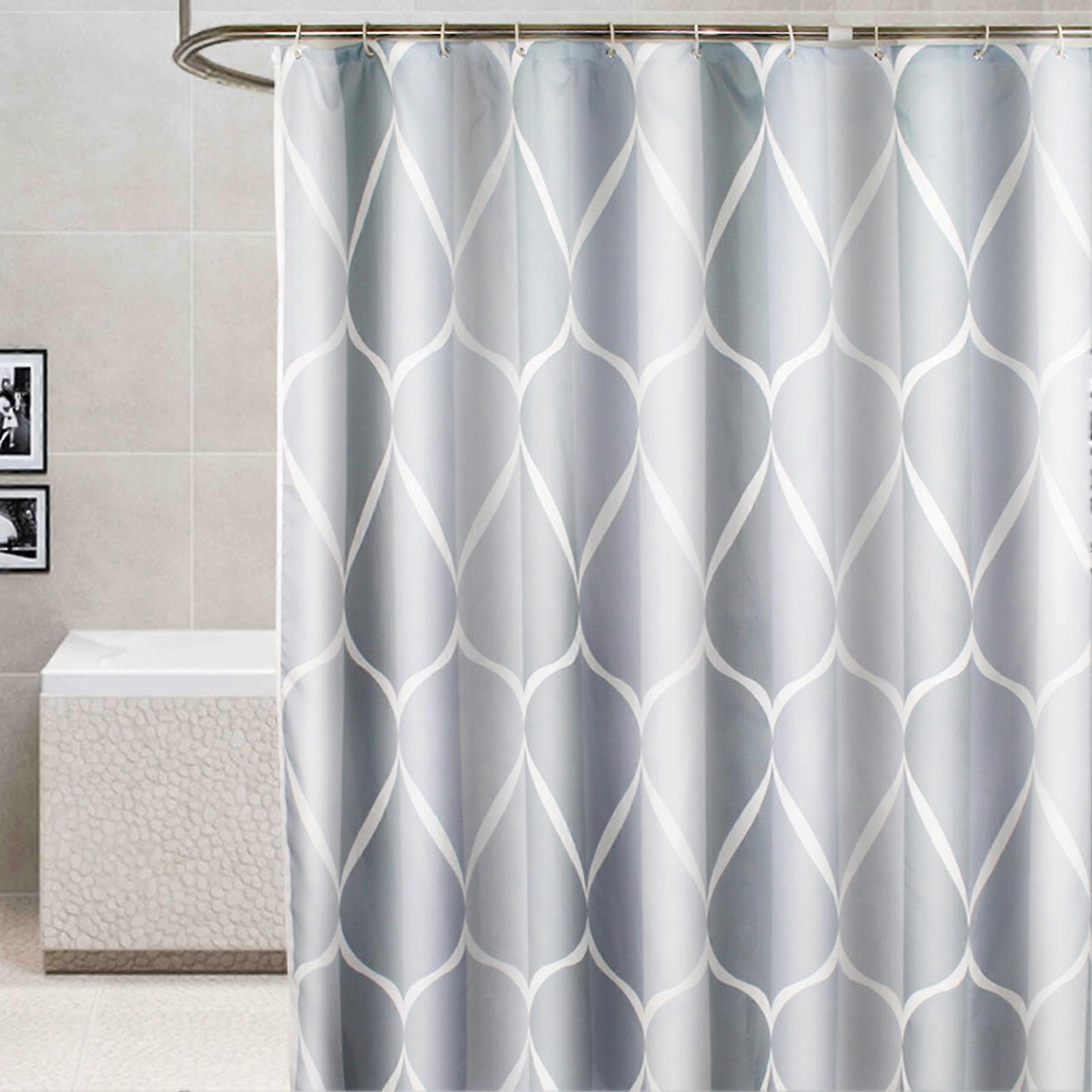 Waterproof Polyester Shower Curtain Water Drop Pattern Durable Fabric 180cm x 180cm with 12 Hooks for Bathroom Decoratio