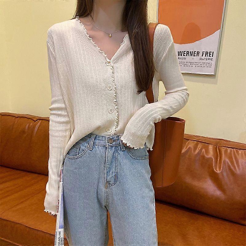 V-Neck Sweater Women's Cardigan Thin Spring And Autumn Fungus Long Sleeve Inverness Top Women's