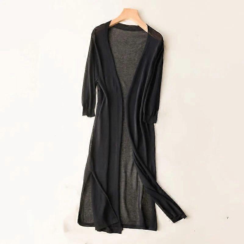 Summer Mid-Length Knitted Cardigan Sun Protection Clothing Women's Korean-Style Three-Quarter Sleeve Hollow-Out Loose Air-Conditioner Cardigan Coat Wo