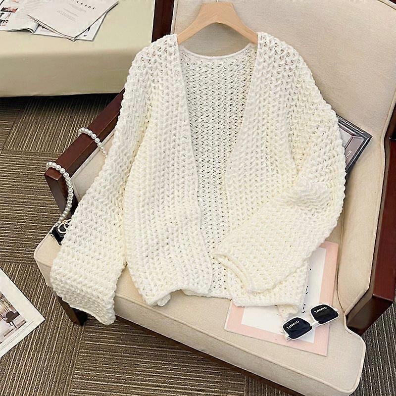 Real Shot Spring Clothing Loose And Lazy Style All-Matching Hollow Knitwear Cardigan Top Sweater For Women