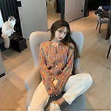 Fl19482 Spring Korean Style Rainbow Cardigan Sweater Loose Long Sleeve Contrast Color Knitted Coat Top Women's Fashion