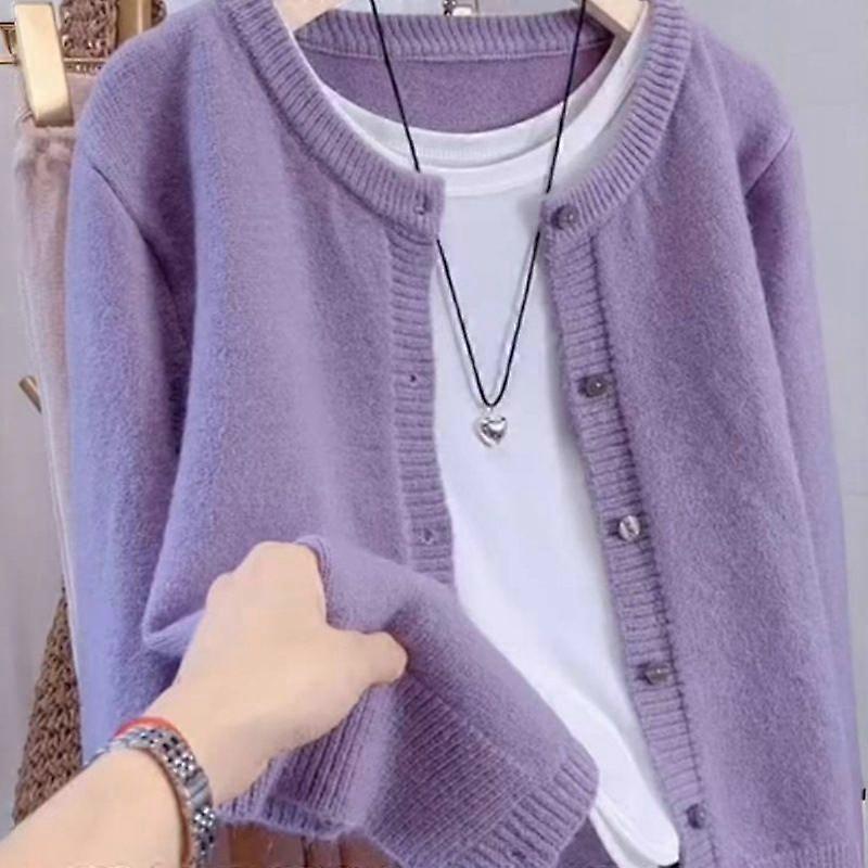 Purple Sweater Cardigan Women Coat Early Autumn Women's Clothes Loose Gentle Single-Breasted Knitted Top