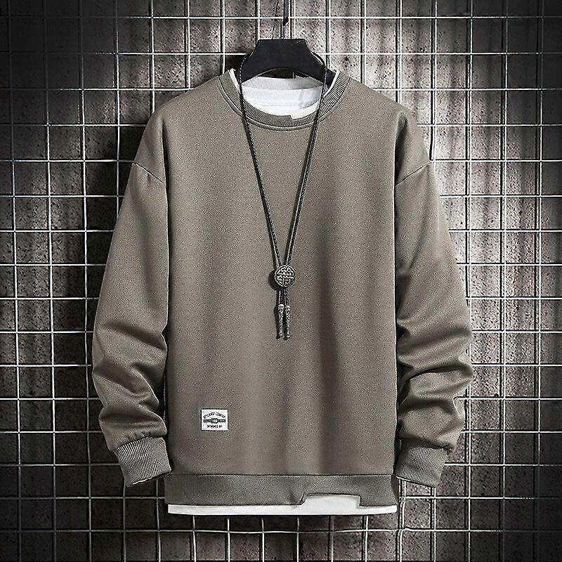 Spring Men's Round Neck Long Sleeve T-Shirt Loose Korean Fashion Trend False Two-Piece Sweaters 6720