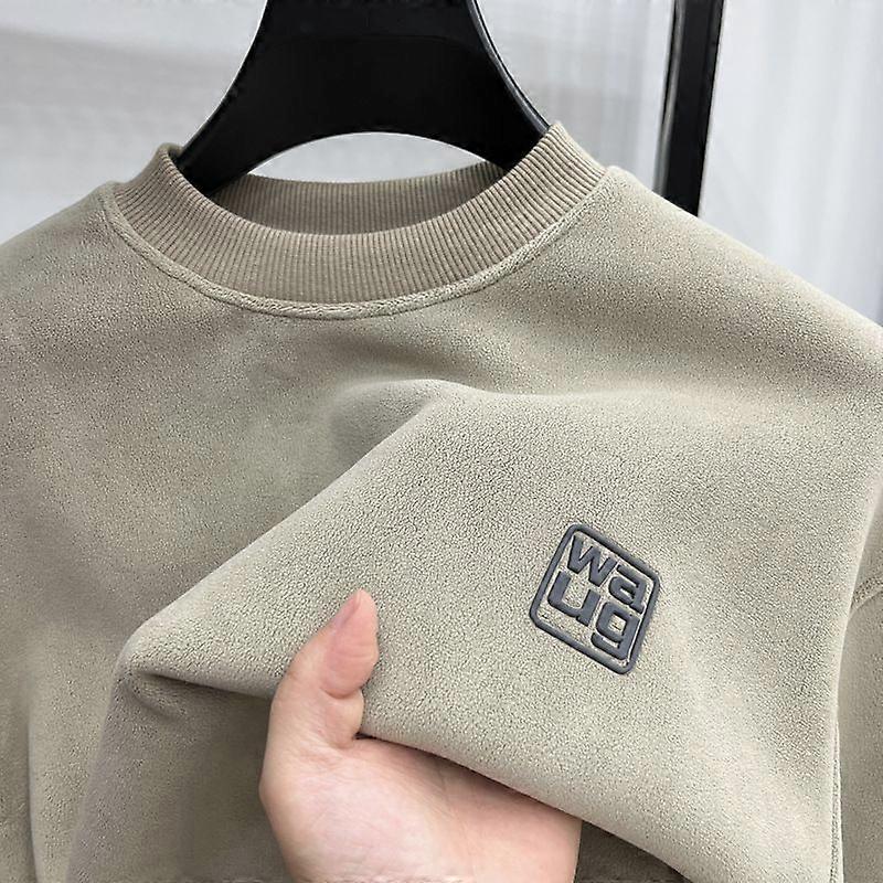 Men's Autumn Round Collar Solid Color Long Sleeve Thickened Fleece Hooded Sweater Casual Shirt