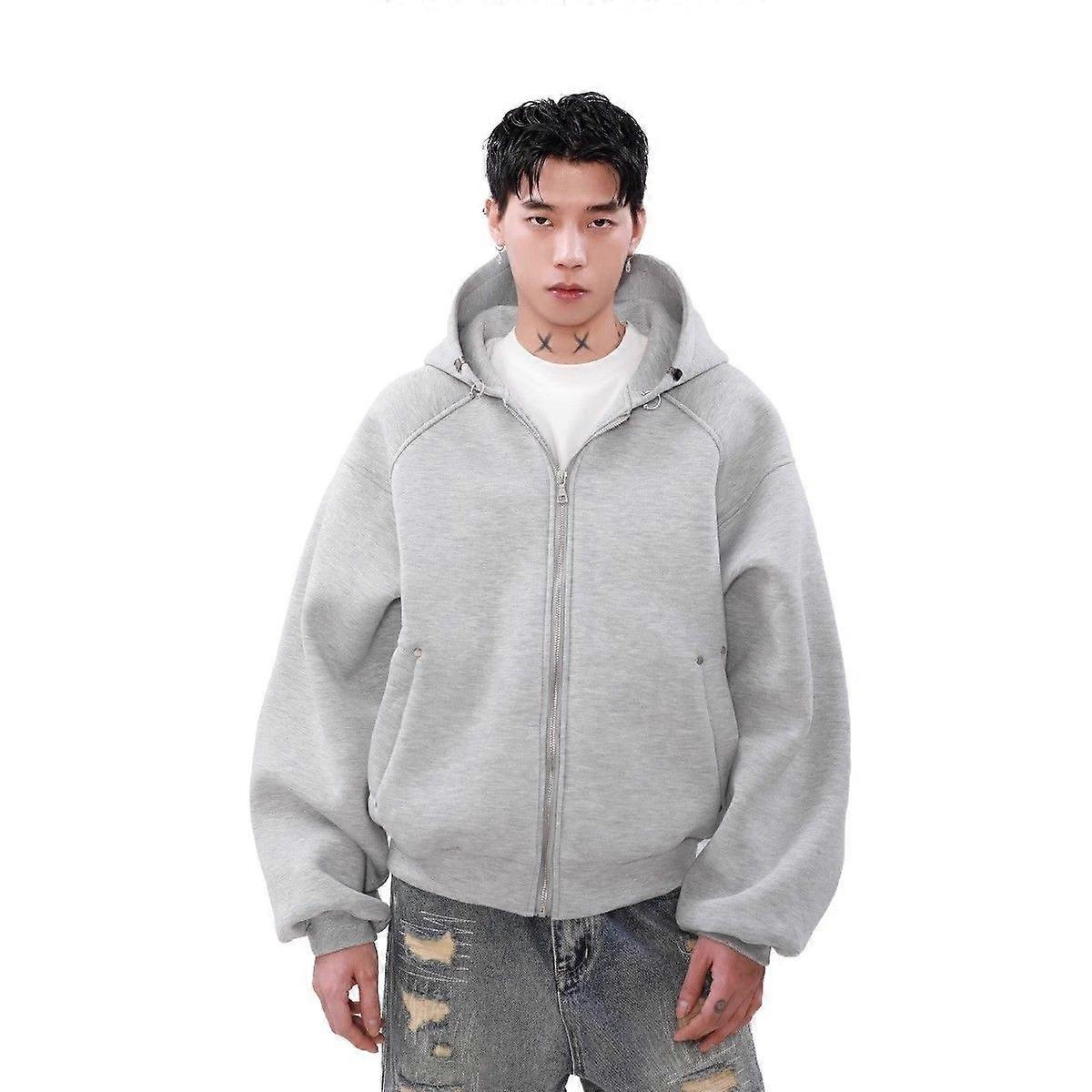The American Retro Boxy 480G Zipper Cardigan Hoodie Men's Winter Trend Loose And Versatile Hooded Jacket