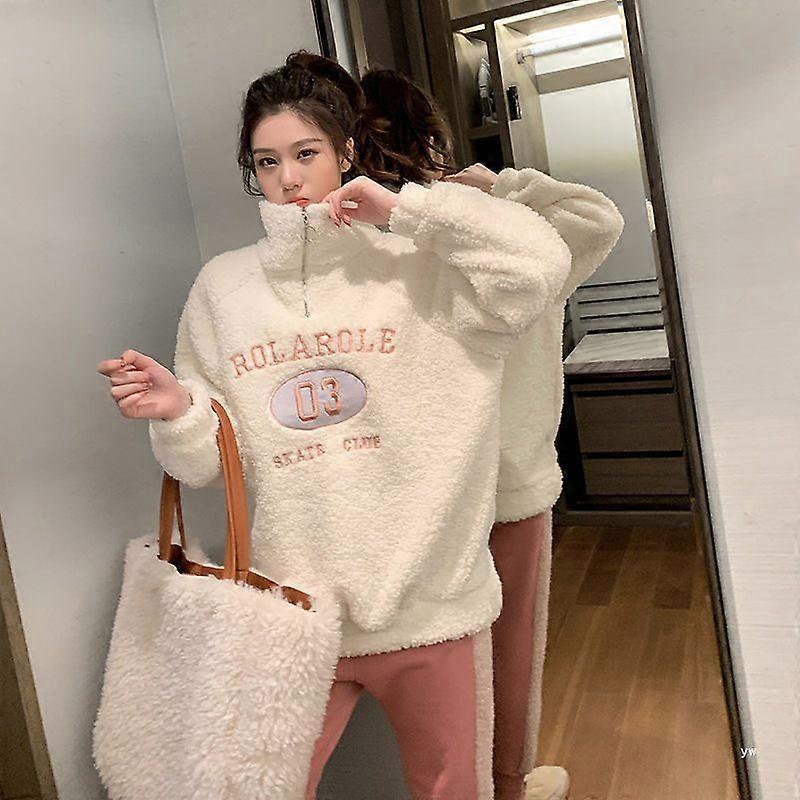 A Lambskin Hoodie For Women In Autumn And Winter, With Thickened Fleece, Trendy And Loose Korean-Style Embroidered Fleece And Laid-Back Coat Trend