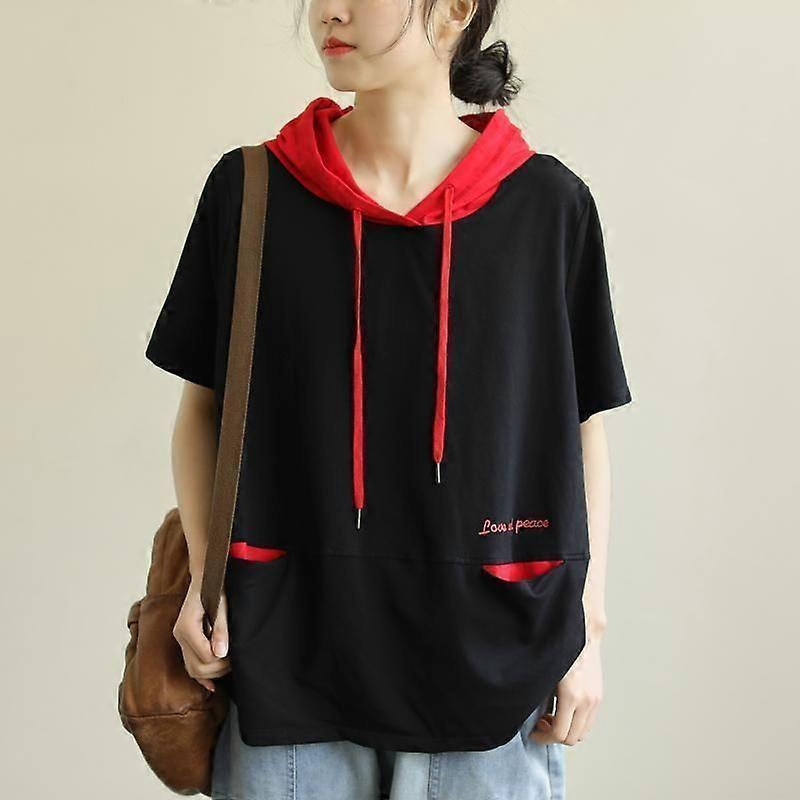 100 Pure Cotton Summer Girls' Short-Sleeved T-Shirt, Stylish And Flattering Hooded Sweatshirt For Overweight Girls