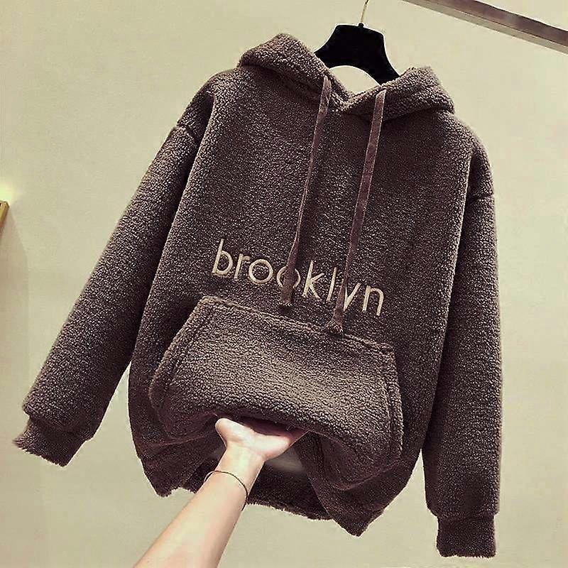 Thickened Lambskin Sweatshirt For Women In Autumn And Winter, Korean Style Loose Fleece Top Coat, Dongdaemun Women's Clothing Trend