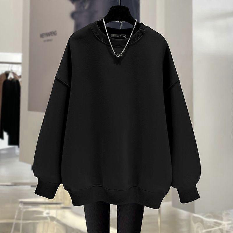 Pink Round-Neck Hoodie For Women, Thickened With Fleece, Solid Color, Laid-Back Style, European Loose Pullover Top For Autumn And Winter
