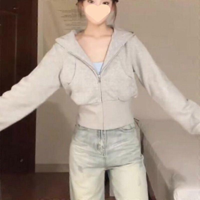 Zipper Hooded Waist Loose-Fitting Casual Pullover Women's Spring Autumn And Winter Sports Waist Trimming Coat Cardigan Top