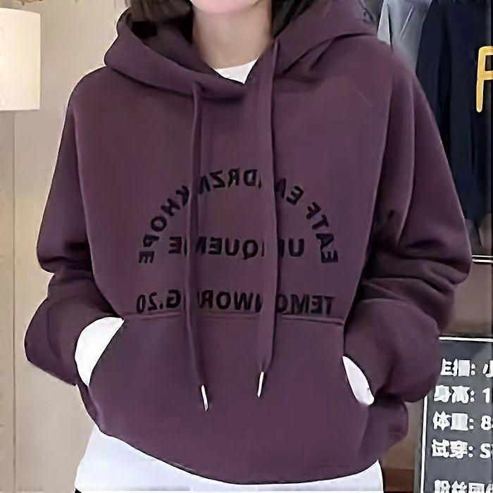 [30-33] Fleece-Lined Thickened Hooded Sweatshirt Female Autumn And Winter Leisure All-Matching Youthful-Looking Letter Kangaroo Pocket
