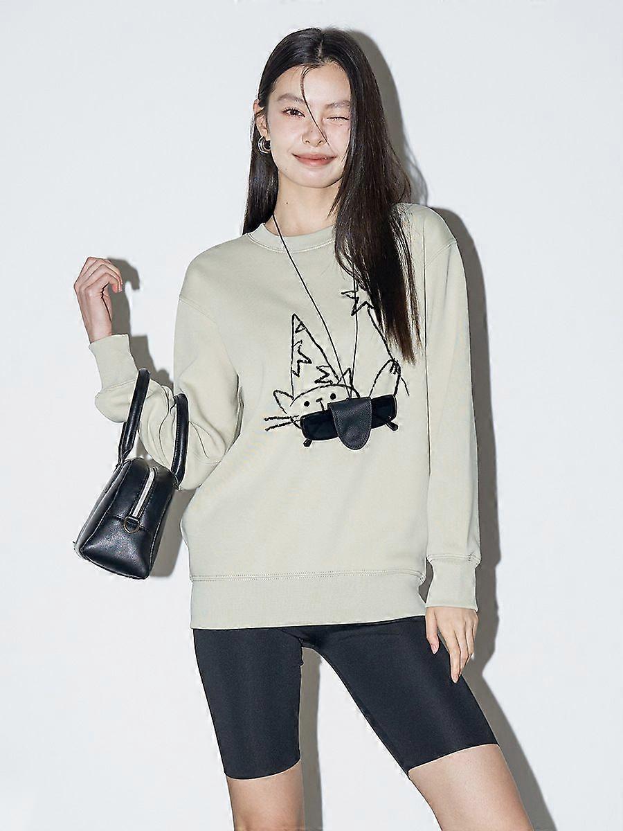 Round Neck Sweater For Women Fleece-Lined Spring Design Cartoon Print Hooded Coat Loose Velvet Hoodie