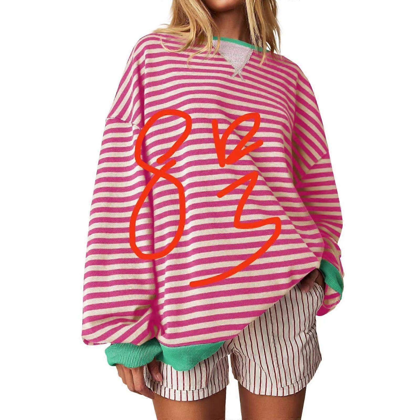 Casual Simple Striped Embroidered Stitching Color Crew Neck Pullover Sweatshirt Shirt Long Sleeve Women's Sweater Women