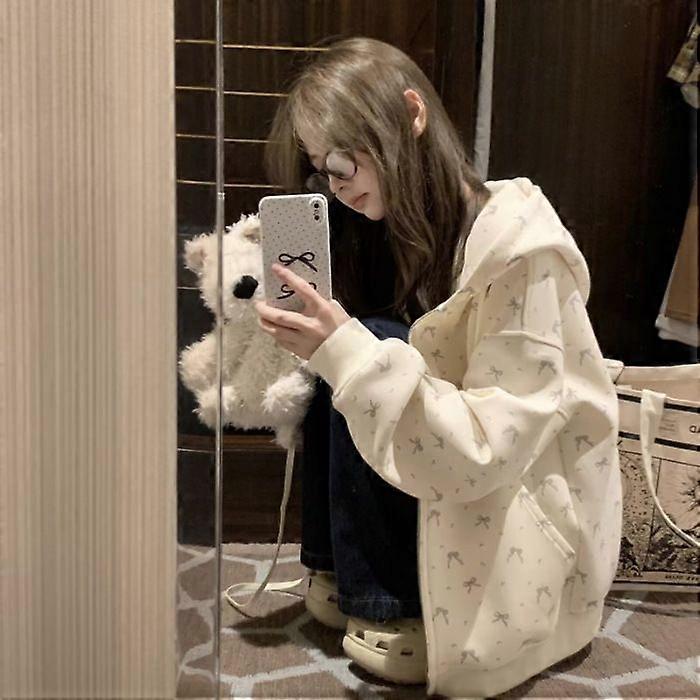 Korean Style Sweet Floral Hooded Cardigan Sweater Women's Spring And Autumn Oversize Loose Milk Fufu Coat