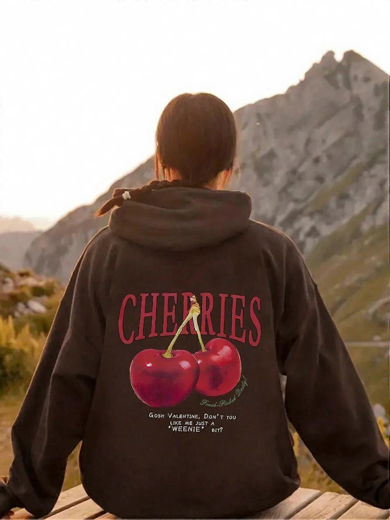 Women's Cherry Printed Sweater Spring And Autumn Long-Sleeved Leisure Travel Sports Shirt Outdoor Multi-Functional Pullover