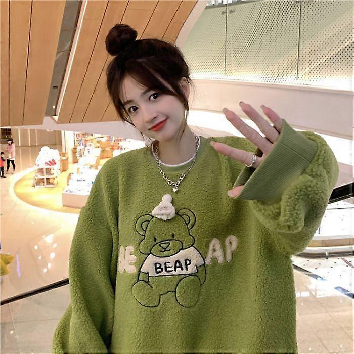 Bear Hoodie Autumn Round Neck Embroidered Loose Thick Long Sleeve Top For Women
