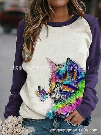 Winter European Style Round Neck Women's Fashion 3D Cat Printed Long-Sleeved Top