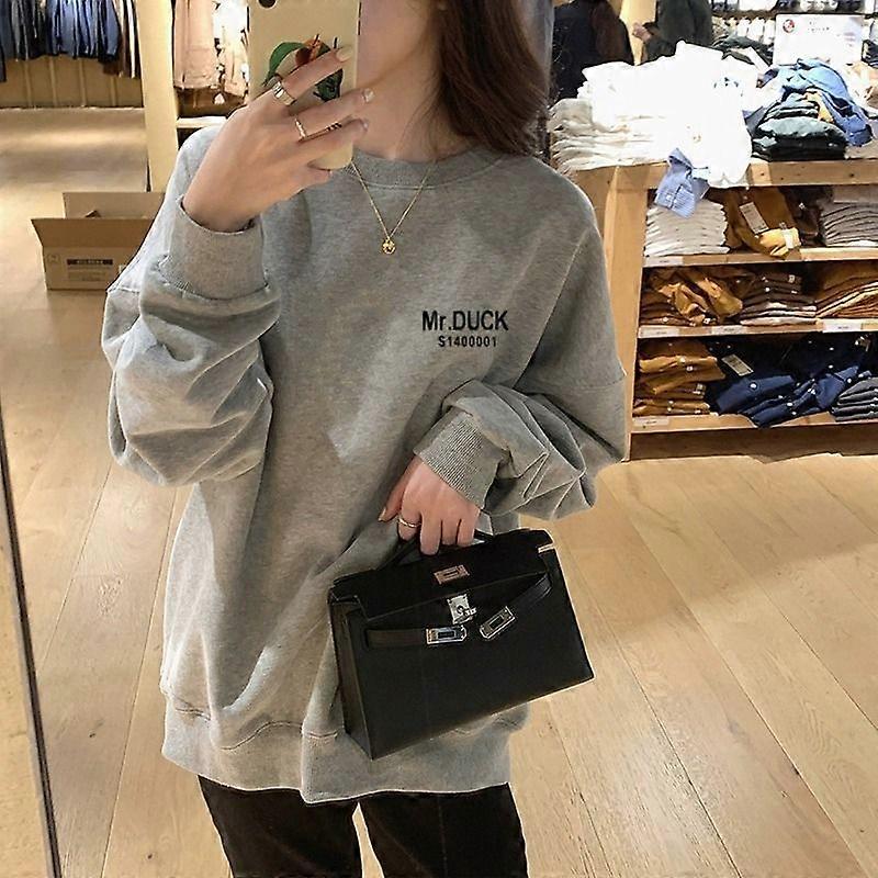 Early Autumn Grey Hoodie Jacket For Women, Loose Without A Hat, Spring And Autumn Trendy Long-Sleeved Top For Women