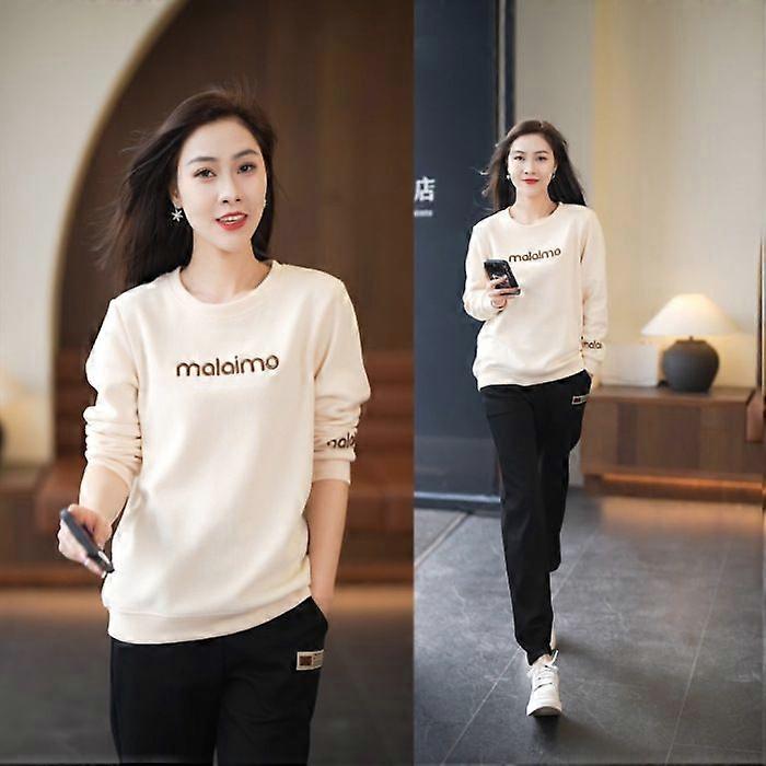 A Youthful Letter-Embroidered Long-Sleeved Hoodie For Women, Loose And Slimming, Casual Round-Neck Mom Dress For Spring And Autumn