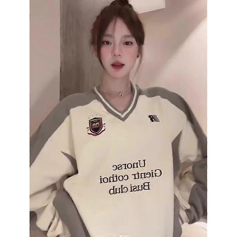 A Color-Blocking V-Neck Sweatshirt For Women, A Thin, Loose And Laid-Back Casual Sportswear Jacket For Spring And Autumn