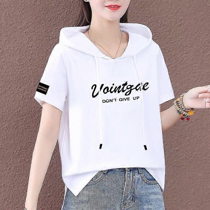 Short Sleeve Hoodie Women Summer Thin Loose White T-Shirt Women Casual Fashion Top Women's Clothing