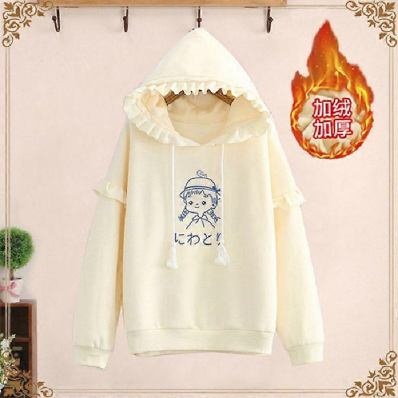 Fleece-Lined Thickened Hooded Sweatshirt Women's Autumn And Winter Fashion Tops Youth Less Students Warm-Keeping Sweater Loose Girls' Clothing