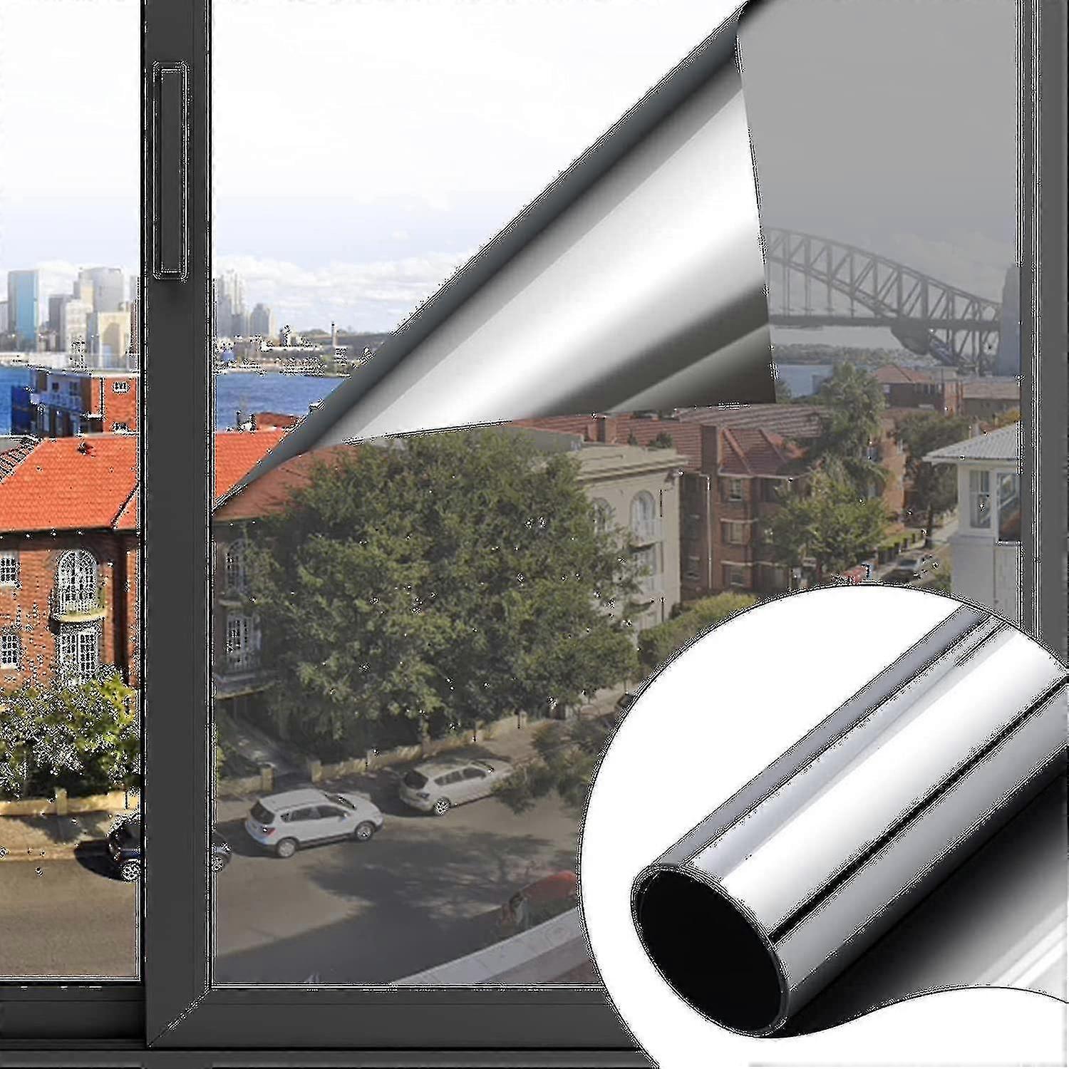 Strong Uv Protection: The Window Film Can Block Infrared And Ultraviolet. It Can Also Protect The Skin Against Harmful Radiation, Reduce Fading And Aging Of Furniture. Optimal Heat Protection: Our Mirror Film Can Guarantee Up To 99% Uv Protection And Reflect 60% Of Heat Radiation. So Your Bedroom Or ice Stays Pleasantly Cool Even On Hot Summer Days. In Winter, It Can Also Effectively Reduce Heat Loss In The House. Privacy Protection: The Mirror Film Gives You More Privacy During The Day. Thanks To The Shiny Mirror Film, You Can Use It As A Mirror During The Day And No One Can See You. At The Same Time, You Can Enjoy The Scenery Outside The Window. Note: At Night Under The Influence Of Indoor Lighting, The Mirror Film Has No Reflective Effect Easy To Use: The Window Film Is Simply Applied With Soapy Water And Adheres Without Glue Thanks To Static Load. The Sturdy Mirror Film Is Scratch And Dirt Resistant And Can Be Easily Cleaned With Window Cleaner. Besides, The Film Retains Its Shine And Does Not Wrinkle Even After Several Years. Suitable For Different Places: Our Protection Window Film Can Be Used In Bedrooms, Kitchens, Living Rooms, Bedrooms, Etc. Children, ices And Even Cars. For Best Effect, We Recommend Mounting This Film Together, Measuring The Desired Size With A Ruler, And Cleaning The Glass Before Applying The Film, To Avoid Air Bubbles At The End."