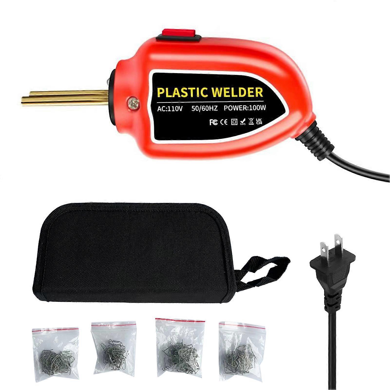 100W Plastic Welder Kit with 200pcs Welding Nails for Car Bumper Kayak Plastic Repair Hot Stapler Machine Pliers Knife Features: 1、100W High-power Plastic repair Welder kit,Fast heating in 1-3 seconds,Without preheating, up to 400 ° C in secondsfaster he 2、Has a safety overheating conservation function. Ensure equipment safety and prevent fires. 3、It is suitable for the repair and reinforcement of automotive plastic parts, such as bumpers, dashboards, lamp holders, radiators, handles, headlights, plastic fins, and motorcycle plastic devices. Specification: Feature 100W High-power Plastic repair Welder kit,Fast heating in 1-3 seconds,Without preheating, up to 400 ° C in secondsfaster heating and cooling speed, higher efficiency, more energy saving than most 50W and 70W on the market. It can save you a lot of time and quickly complete the maintenance project. Has a safety overheating conservation function. Ensure equipment safety and prevent fires. It is suitable for the repair and reinforcement of automotive plastic parts, such as bumpers, dashboards, lamp holders, radiators, handles, headlights, plastic fins, and motorcycle plastic devices. The ergonomically designed handle feels comfortable to hold, and will not feel fatigued when held for a long time, and no training is required.  Our plastic welding machine bumper repair kit adopts LED light design, which is convenient for dark working environment.  Specifications: Plug type:US Packing weight:511G Package size:20X15X5cm Package List: 1XPlastics Welding Machin 50XFlat Staple 50XM Staple 50XWave Staple 50XV Staple Package List: 1XPlastics Welding Machin 50XFlat Staple 50XM Staple 50XWave Staple 50XV Staple