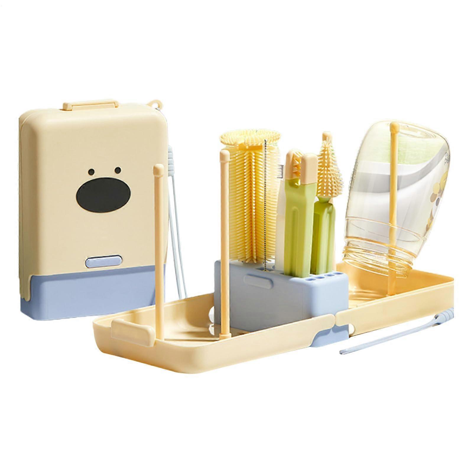 Baby Bottle Brush Set with Straw Cleaner, Pacifier Brush, Silicone Material, Organizer Case, Drying Rack in Yellow