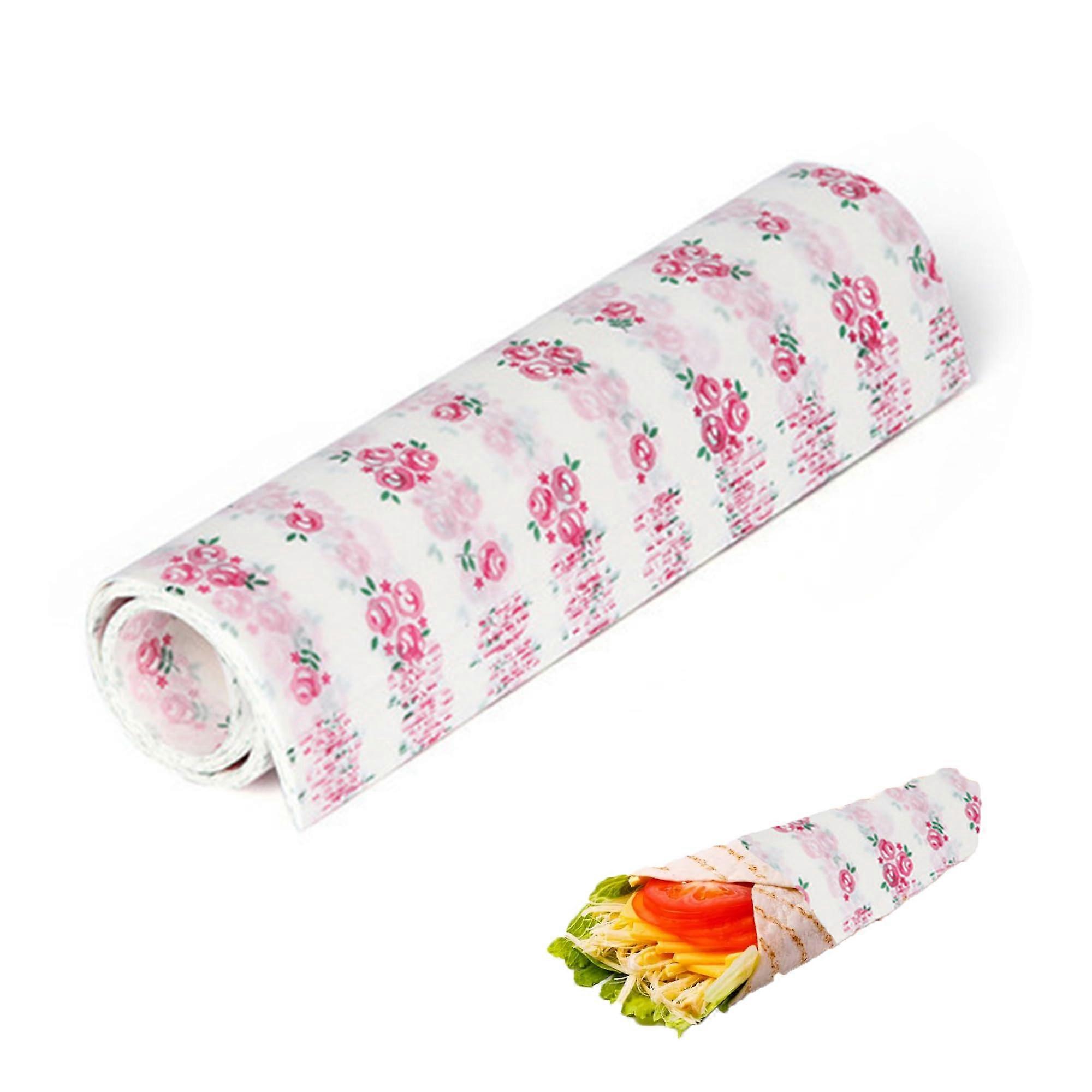 50 Pcs Greaseproof Paper Sheets, Waterproof Floral Pattern Wax Paper for Food Wrapping, 9.84 x 8.46 Inches