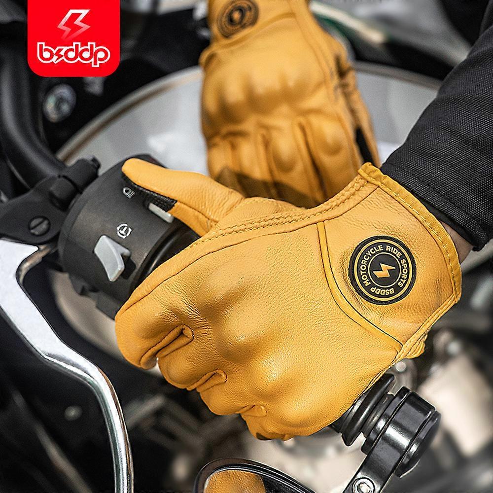 Motorcycle Gloves for Men Premium Leather Street Bike Gloves Impact Resistant Anti Slip Touch Screen Compatible