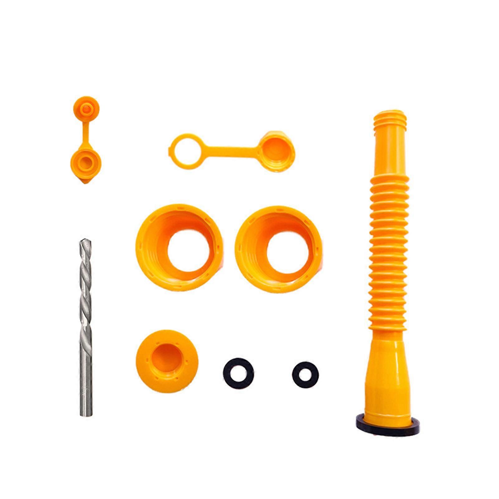 No-Spill Gas Can Spout Replacement Kit with Drill Bit for 1/2/5/10 Gallon Gas Cans Yellow