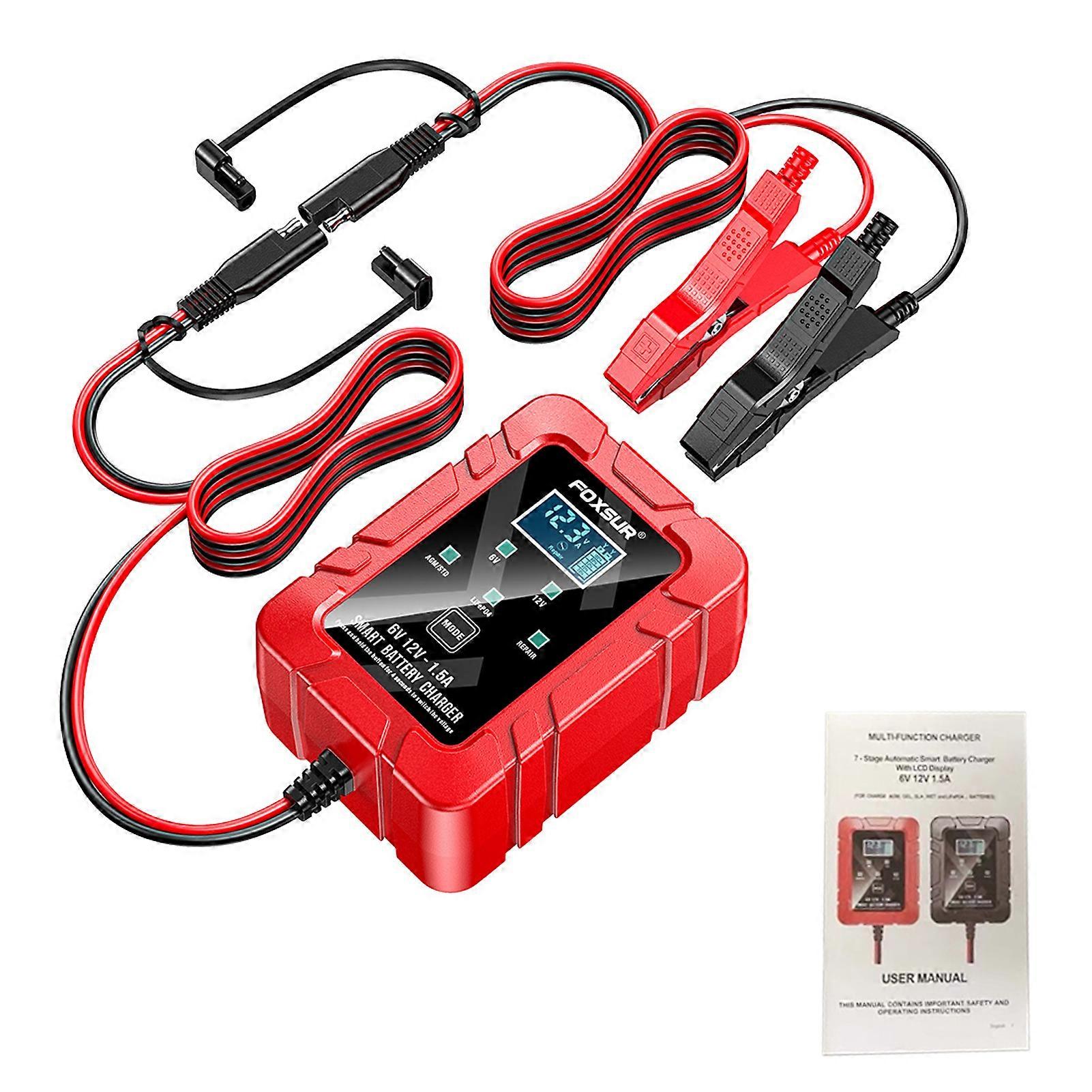 6V 12V Car Battery Charger with LCD Display for Automotive Motorcycle Lawn Mower AGM GEL Lead Acid Batteries US Plug Red