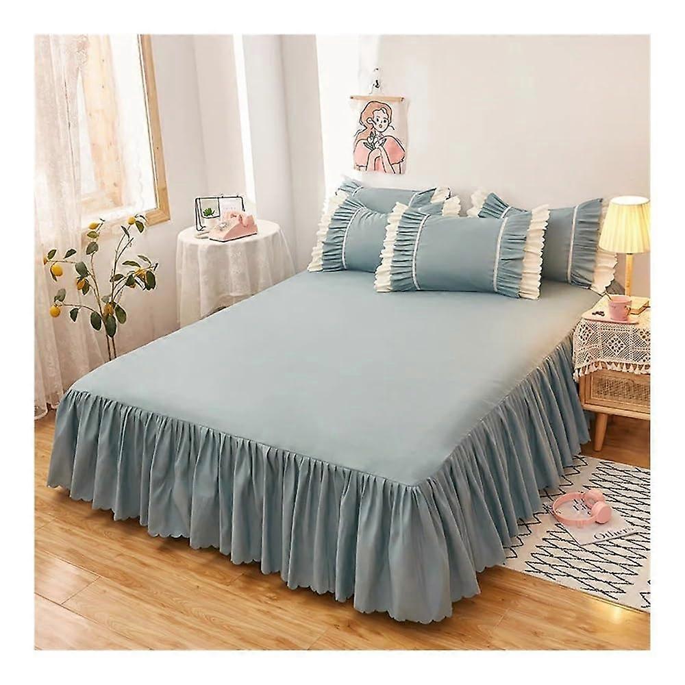 Pink Ruffled Bed Skirt with Elastic, Plain Bed Sheet for Girls Women, 2 Pillowcases