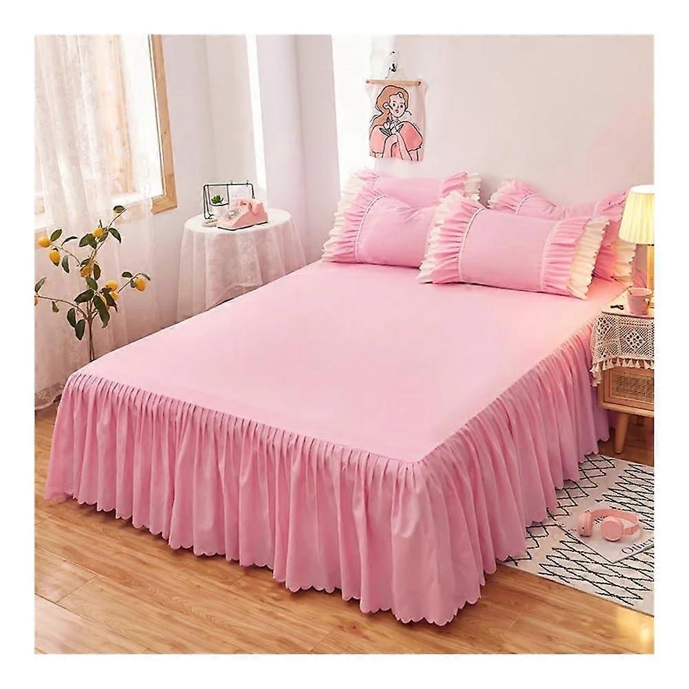Solid Color Pink Bed Skirt with Elastic Ruffle for Girls and Women Princess Style (120x200cm)