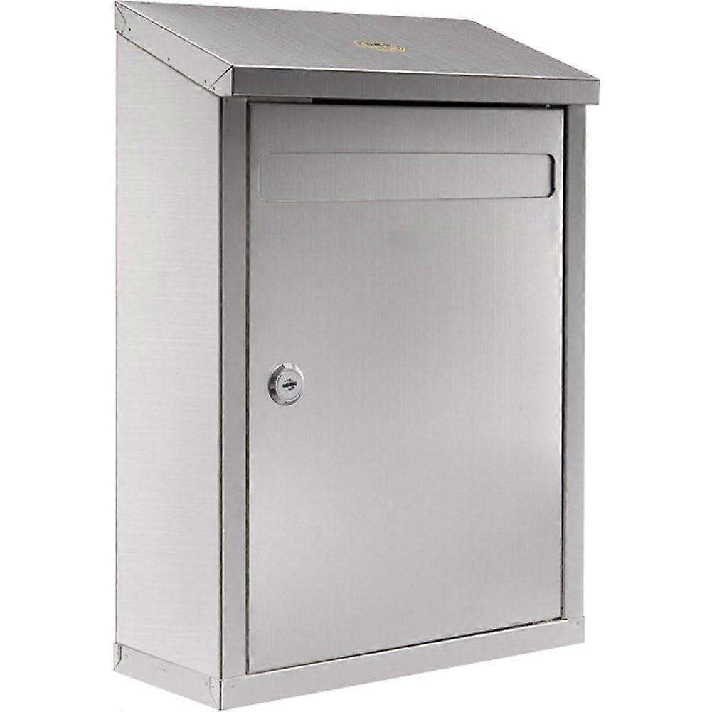 Wall-Mounted Mailbox Stainless Steel, Inclined Design Newspaper Holder, Weatherproof Vintage Mailbox with Lock 378x105x260mm