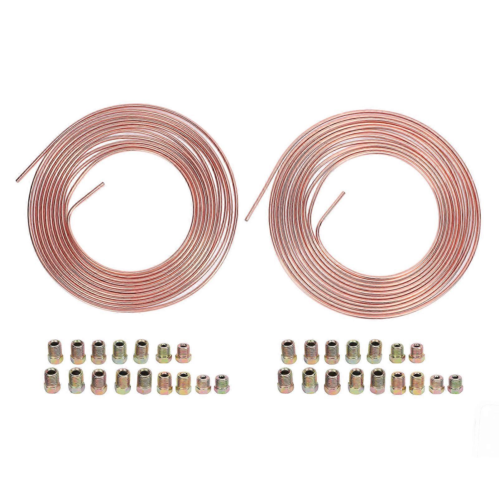 2 Sets 3/16in X 25ft Copper Nickel Brake Line Tubing Coils Kit Erosion Resistant for Automotive Brake System Replacement