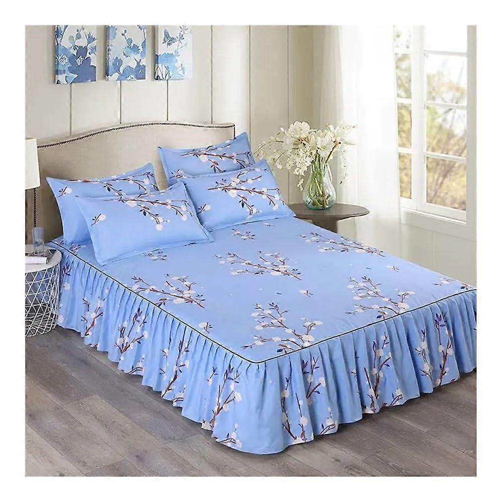 3-Piece Cotton Bed Skirt Set with Embroidery, King/Queen Compatible, White, 180 x 200 cm, Includes Cushion Covers
