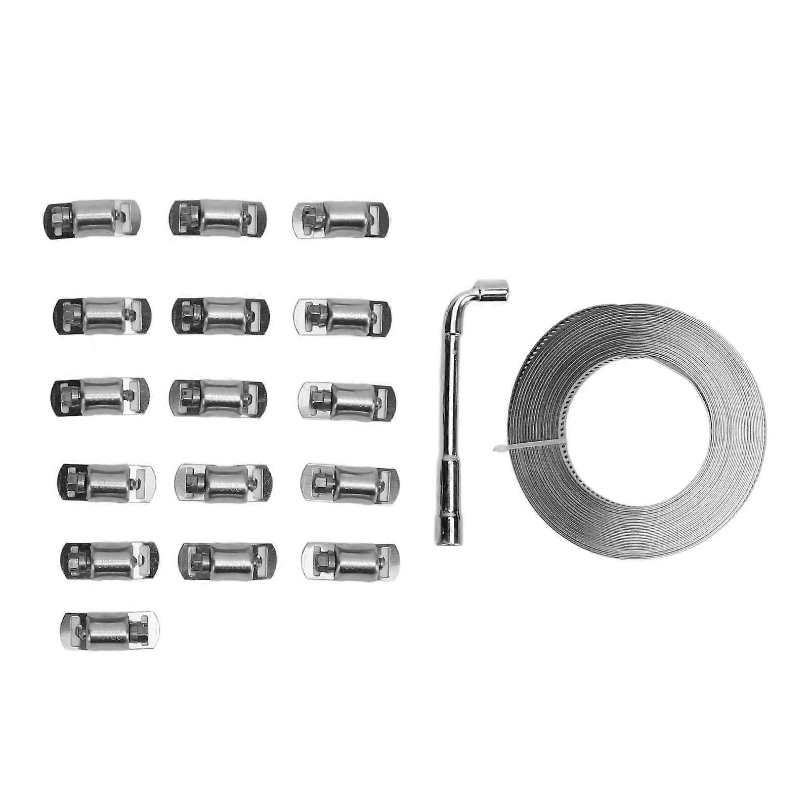 18PCS 304 Stainless Steel Hose Clamp Kit with 10m Metal Strap 8 Strong Fasteners for Pipe Duct Tube Fuel Line