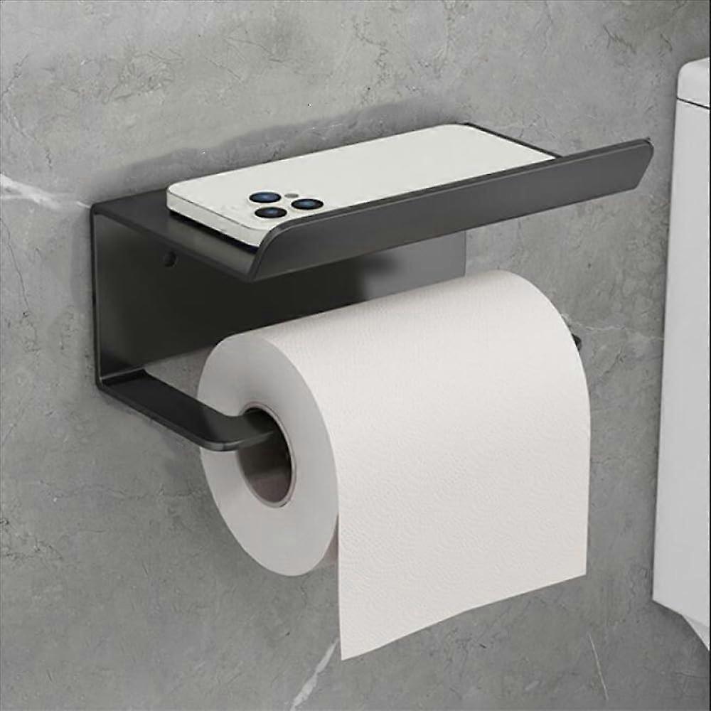 Stainless Steel Toilet Roll Holder Recessed Toilet Paper Holder Punch-Free Self-Adhesive Paper Towel Holder Black