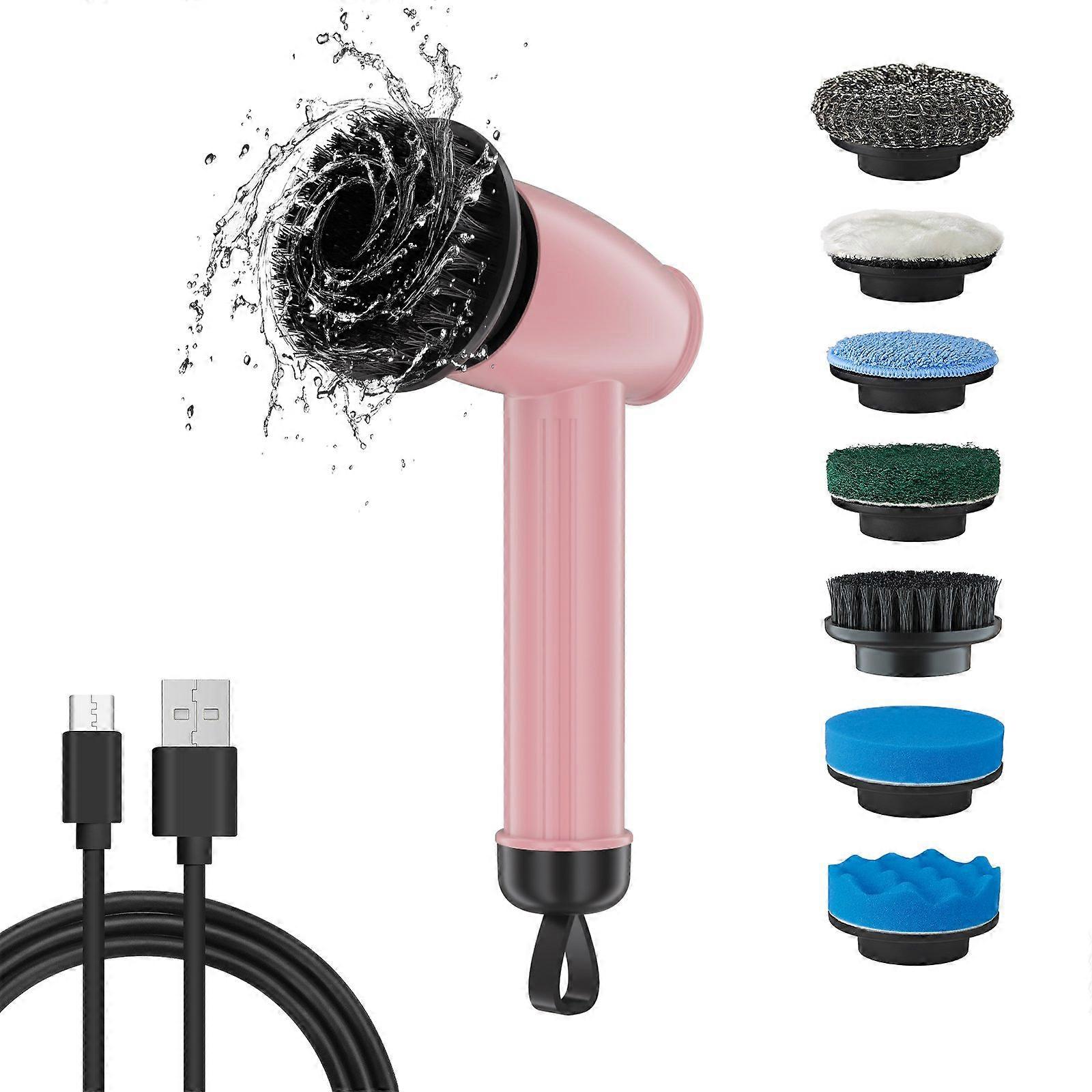 Electric Spin Scrubber Cordless Waterproof Cleaning Brush with Replaceable Heads for Shower Bathtub Sink Tile Floor Cleaning Pink