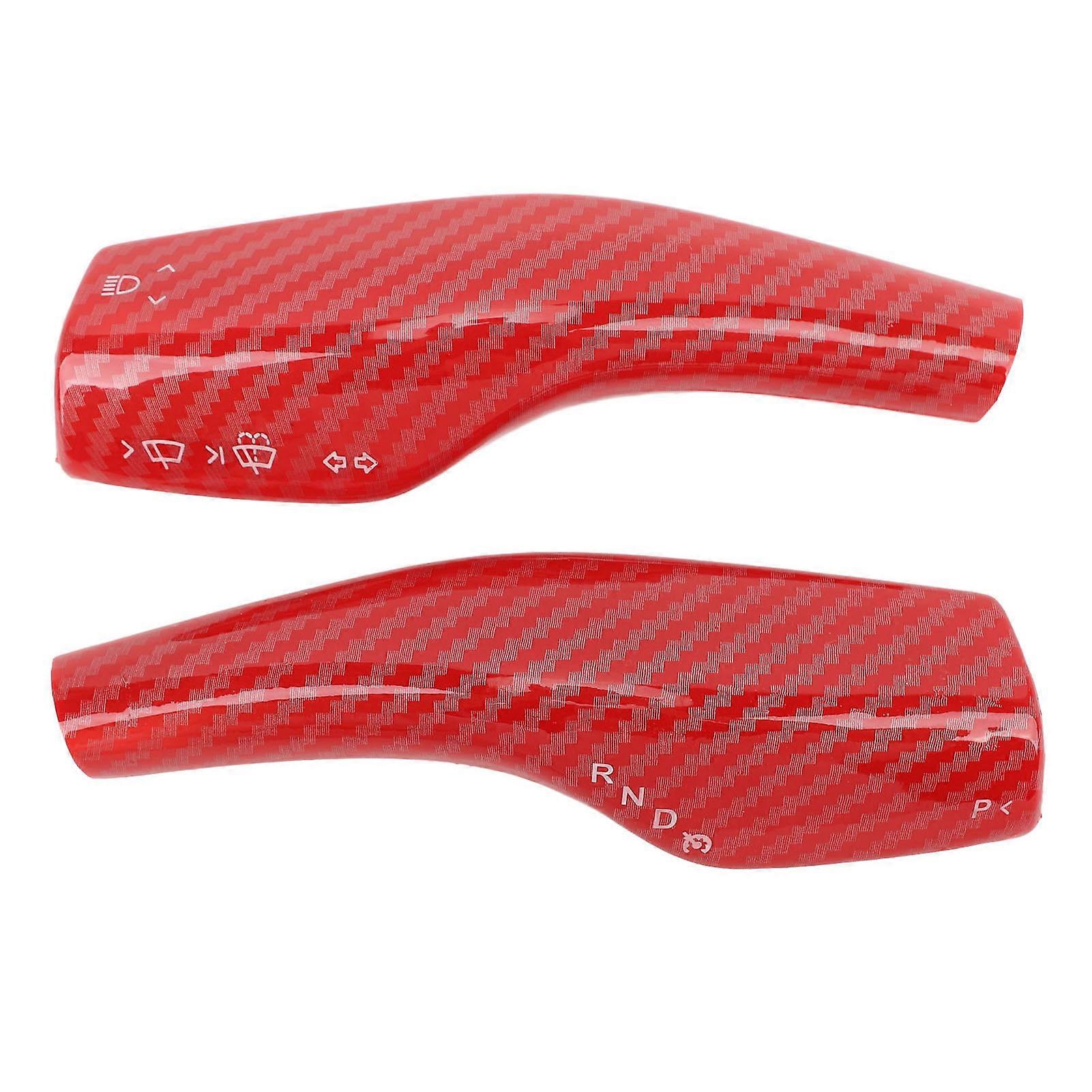2PCS Red Carbon Fiber Steering Lever Covers Protective Decorative Gear Shift Lever Cover for Car
