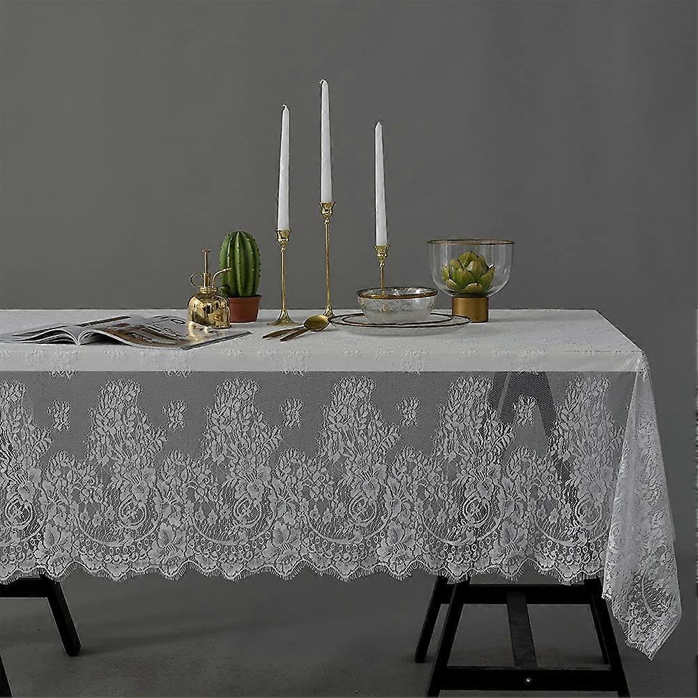 Vintage Lace Tablecloth, White Floral Embroidered Table Cover, Dustproof Dining Table Decoration, 145x260cm (57x102inch)