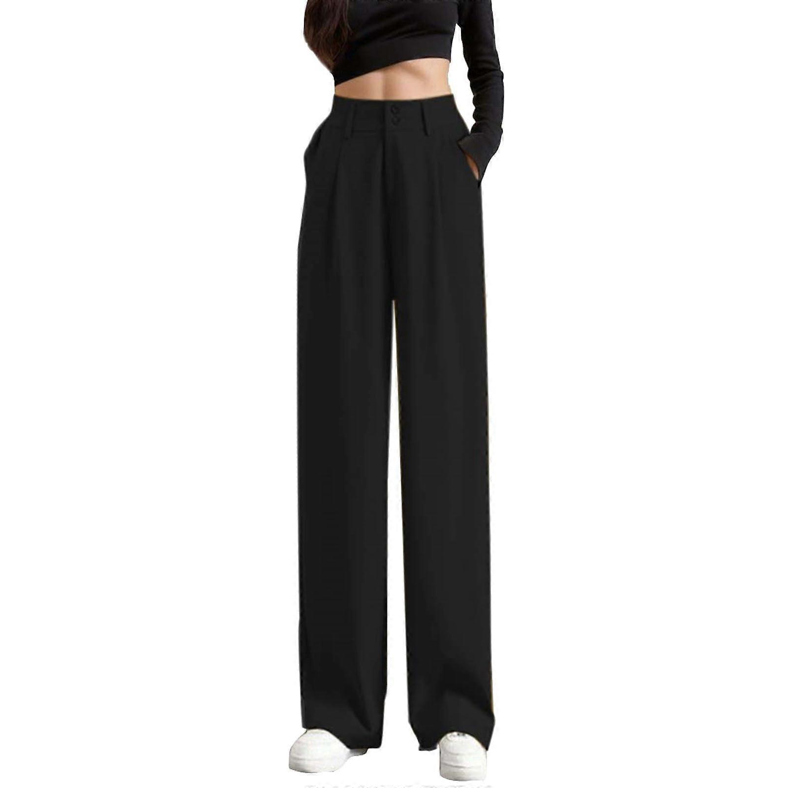 Women's Suit Trousers XL, Wide Leg High Waisted Straight Office Trousers, Stretchy Casual Business Pants, Black