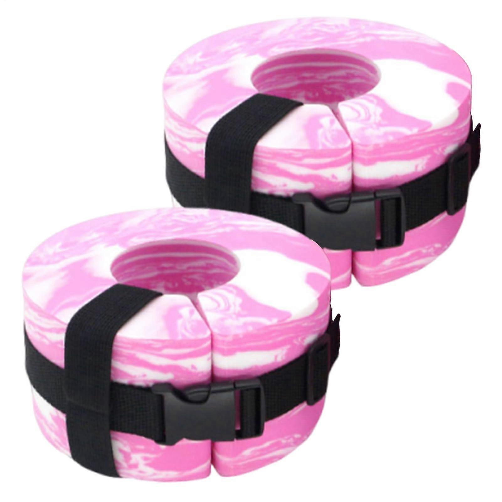 Swimming Arm and Ankle Float Bands with Adjustable Straps for Aqua Fitness and Adult Training Pink White