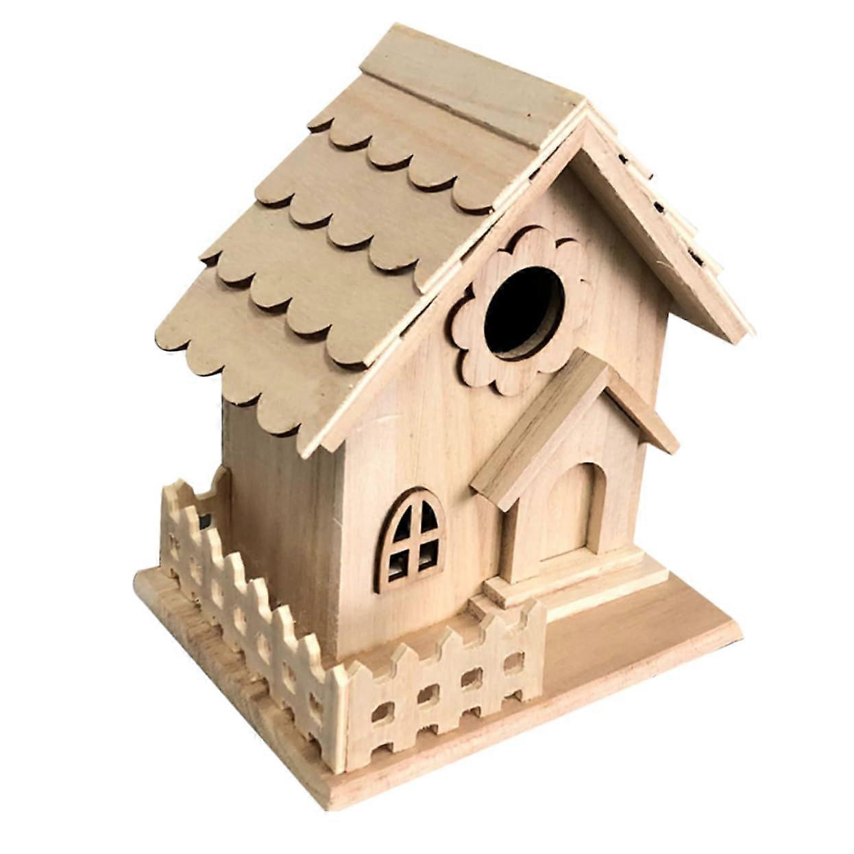 Wooden Bird House Unpainted Rustic Outdoor Decoration for Birds Crafts, Hanging Garden Decor, Natural Wood Home