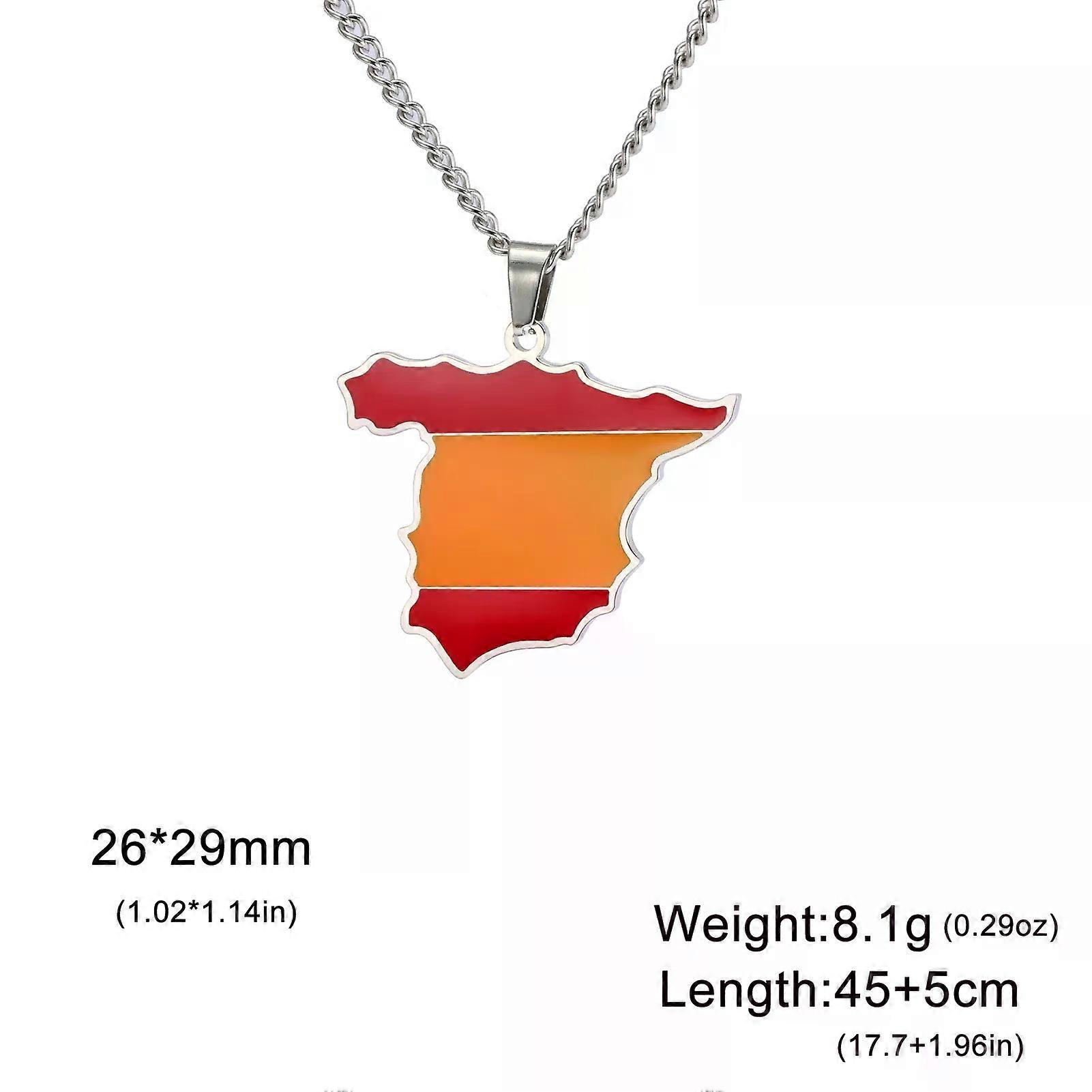 Amaxer Map of Spain Flag Pendant Necklace For Men Women Stainless Steel Necklace Spanish Jewelry Patriotic Gift