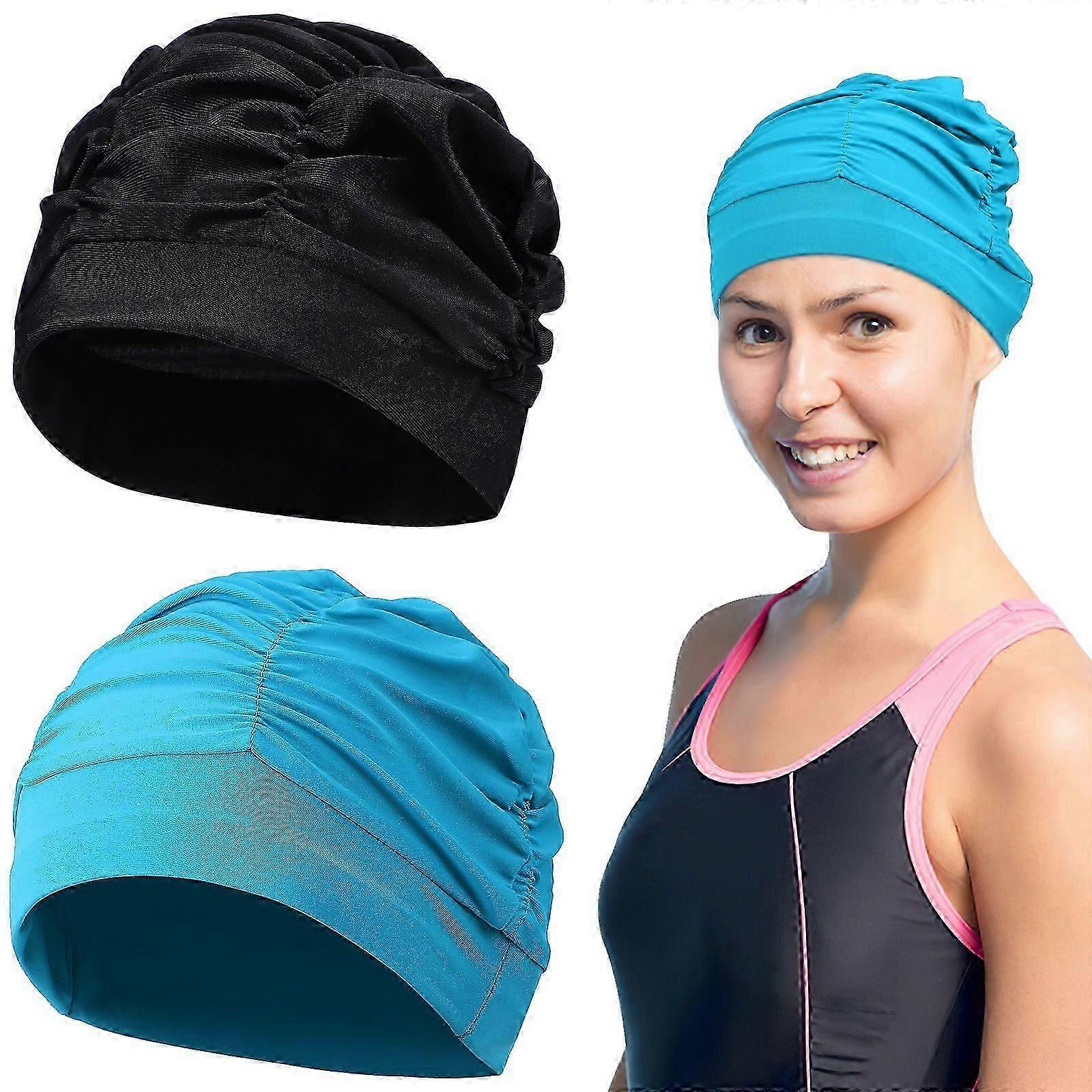 2pcs Swim Caps Fabric Stretchy Cloth Pleated Swimming Hats For Women And Men Comfortable Pool Accessories