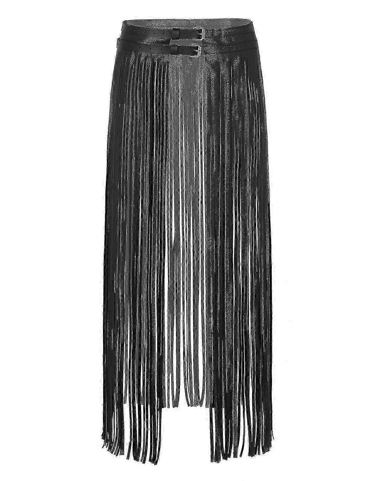 Women Ladies Fashion Clubwear Leather Buckles Gothic Punk Long Fringe Tassel Skirt Belt Nightclub Costume Cosplay Parties Skirts - MXBC