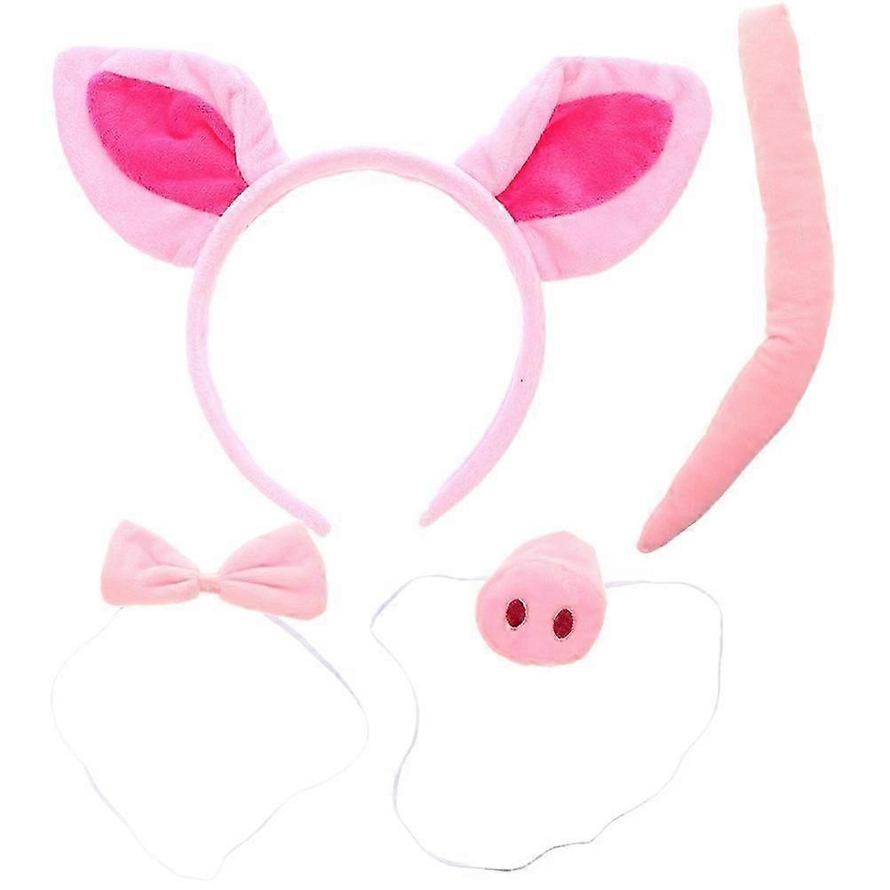 Animal Costume Headpiece Pig Headband Tail Prop Nose Bowtie Pink 24x16cm Cosplay Party Decoration 1Set - MXBC